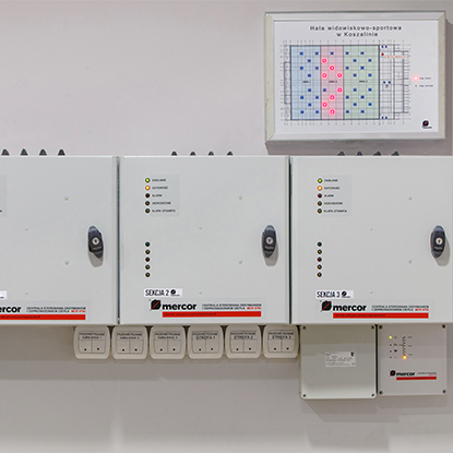 Centrala sterowania oddymianiem mcr 9705 służy do uruchomienia urządzeń elektrycznego systemu oddymiania firmy MERCOR na podstawie sygnału alarmowego z optycznych czujek dymu lub termicznych, z ręcznych ostrzegaczy pożarowych (tzw. przyciski ROP) lub z innej centrali (np. z SSP, z układu automatyki budynku).